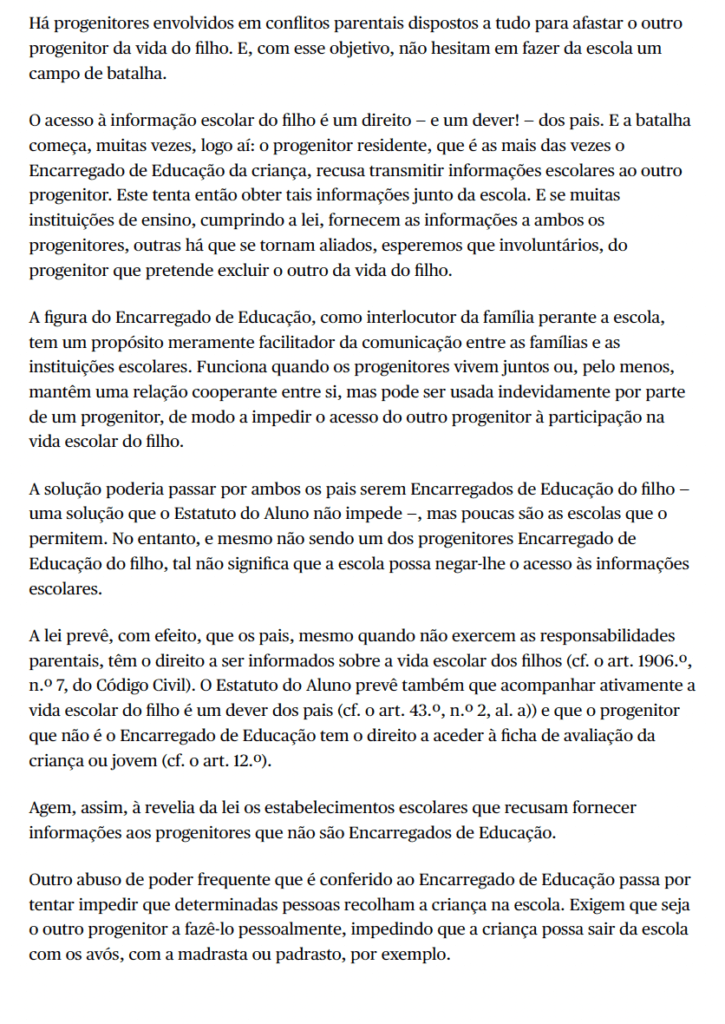 La escuela no puede ser escenario de guerra parental - un artículo de Nuno Cardoso-Ribeiro en el periódico Público